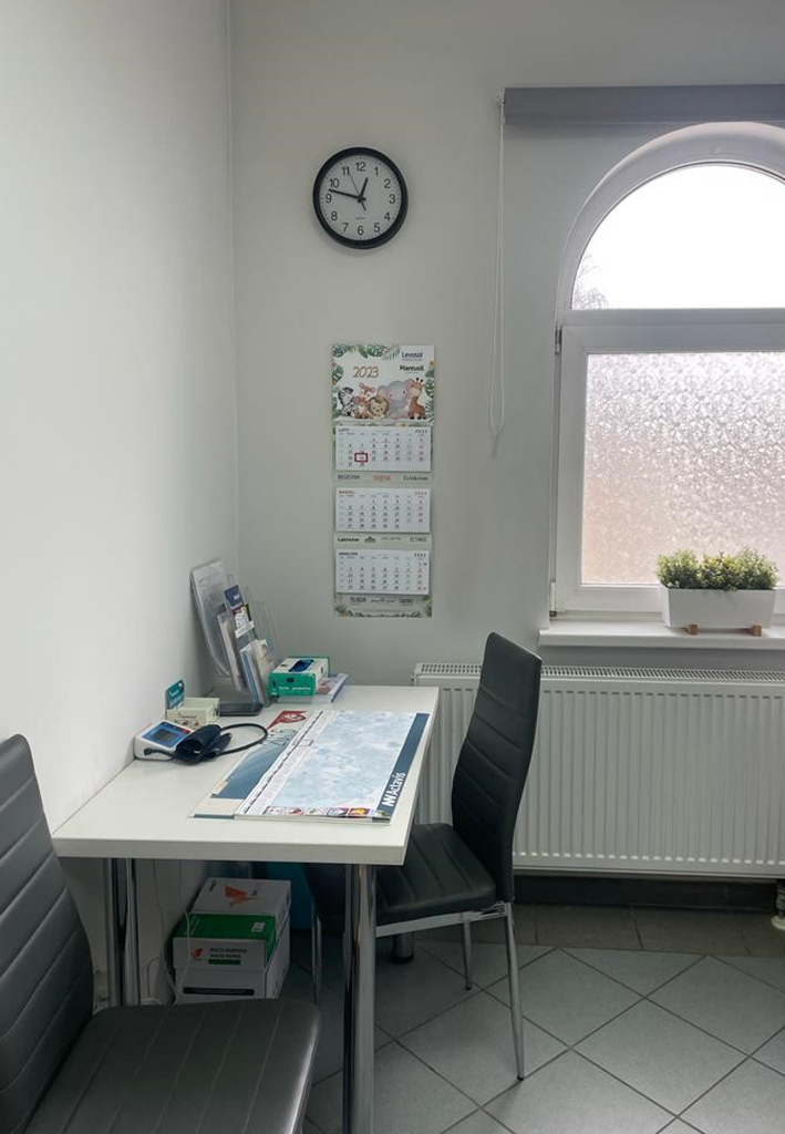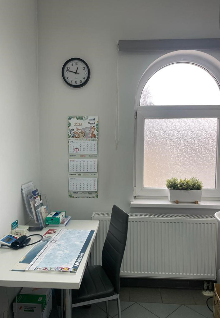 Wraz z gruntownym remontem pomieszczeń przychodni w trosce o komfort pacjentów został również wymieniony cały sprzęt lekarski oraz meble. Zakupiony został nowy aparat EKG i legalizowana waga medyczna ze wzrostomierzem dla niemowląt oraz dorosłych. W gabinecie zabiegowym posiadamy zakupioną wysokiej klasy lodówkę medyczną i lampę zabiegową.